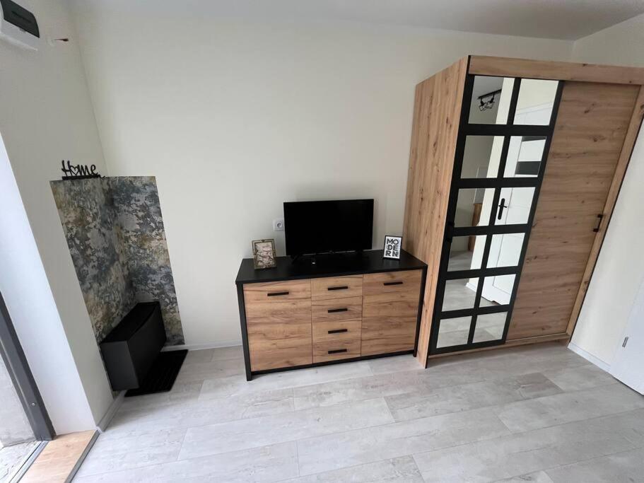 Apartament z 1 sypialnią. This apartment consists of 1 bedroom, a kitchen and 1 bathroom with a bath and a shower. The apartments kitchen, which features a refrigerator and a microwave, is available for cooking and storing food. The apartment provides a washing machine, a wardrobe, an electric kettle, a sofa, as well as a flat-screen TV with streaming services. The unit offers 1 bed and 1 futon. Apartament - 3 osobowy. Powierzchnia pokoju ok.: 22 mkw.