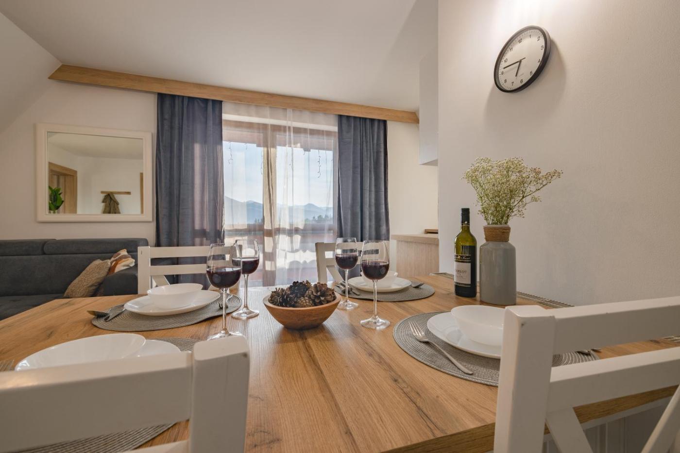 Apartament z 2 sypialniami. This apartment comes with 2 bedrooms, a kitchenette and 1 bathroom with a shower and a hairdryer. Guests can make meals in the kitchenette that features a stovetop, a refrigerator, kitchenware and a tea and coffee maker. The apartment features a dining area, a wardrobe, heating as well as a balcony with mountain views. The unit has 2 beds. Apartament - 4 osobowy. Powierzchnia pokoju ok.: 55 mkw. ;