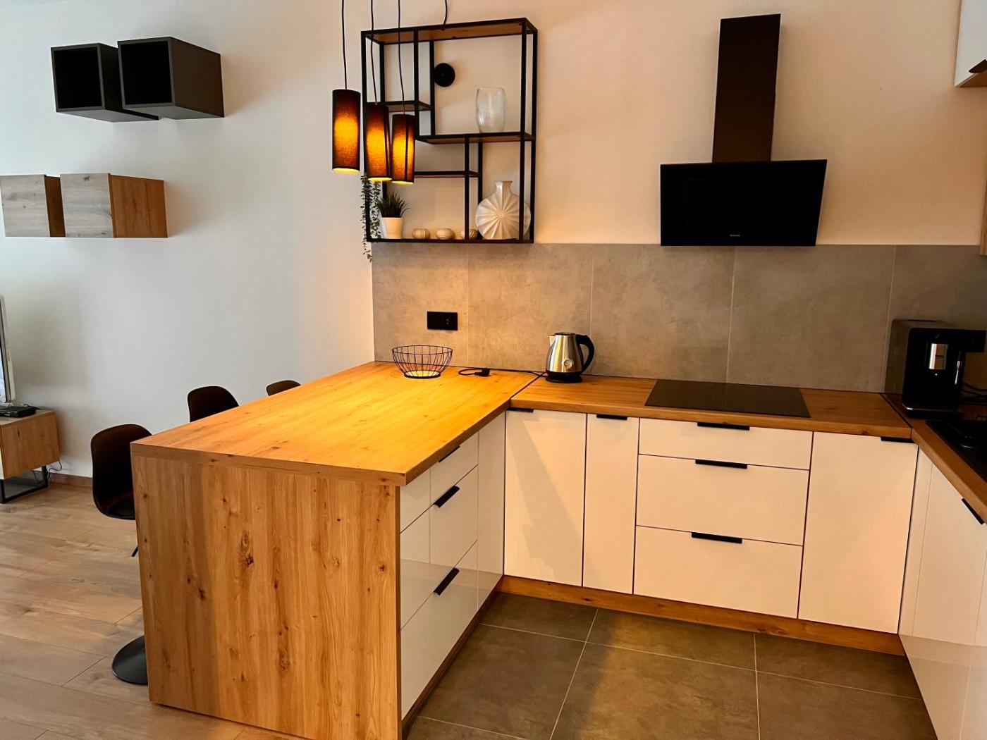 Apartament z 1 sypialnią. This apartment comprises 1 living room, 1 separate bedroom and 1 bathroom with a walk-in shower and a hairdryer. Guests can make meals in the kitchenette that is equipped with a stovetop, a refrigerator, a dishwasher and kitchenware. The apartment provides a washing machine, soundproof walls, a tea and coffee maker, a flat-screen TV with streaming services, as well as garden views. The unit offers 3 beds. Apartament - 5 osobowy. Powierzchnia pokoju ok.: 55 mkw. ;