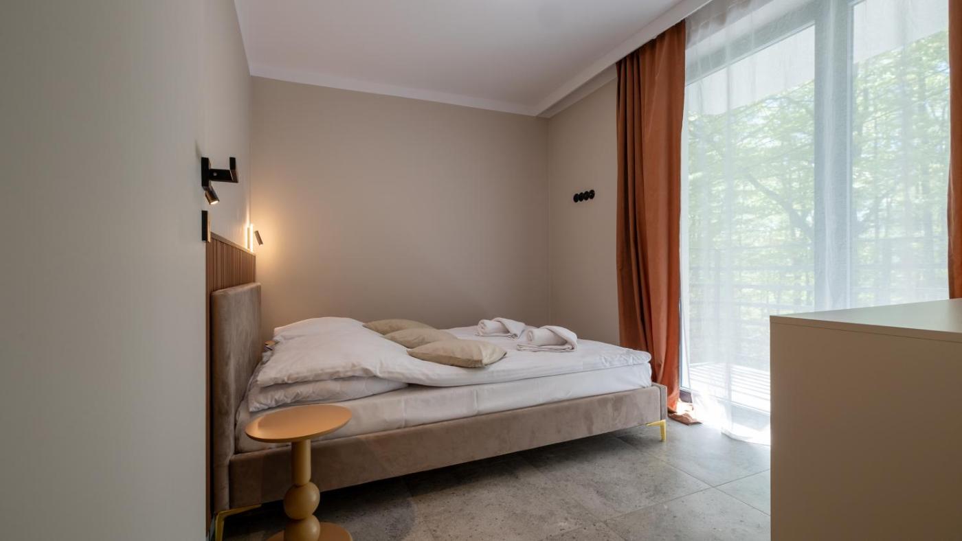 Apartament z 1 sypialnią i balkonem. Apartament ten mieści salon, oddzielną sypialnię oraz łazienkę z prysznicem i suszarką do włosów. W dobrze wyposażonym aneksie kuchennym przygotowano płytę kuchenną, zmywarkę do naczyń, lodówkę i przybory kuchenne. Udogodnienia obejmują balkon, część wypoczynkową z telewizorem z płaskim ekranem i ekspres do kawy. W tej opcji zakwaterowania są dostępne 2 łóżka. Apartament - 4 osobowy. Powierzchnia pokoju ok.: 42 mkw.
