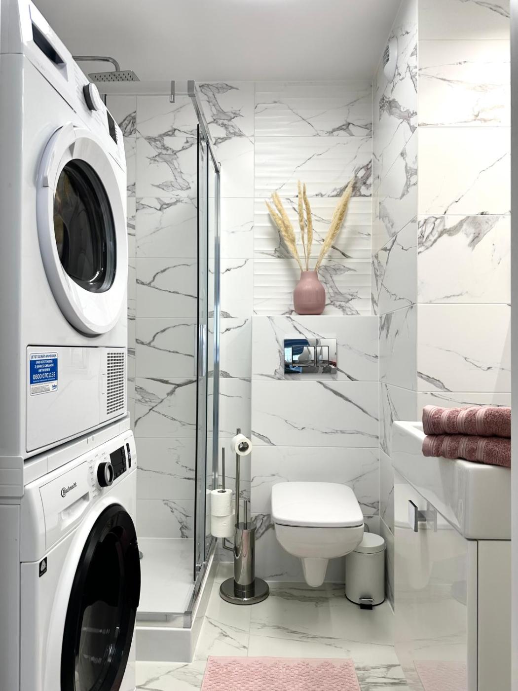 Apartament z 1 sypialnią. Guests can make meals in the kitchenette that features a stovetop, a refrigerator, a dishwasher and kitchenware. This apartment is air-conditioned and has a seating area with a flat-screen TV, a washing machine, a private entrance, soundproof walls, as well as a coffee machine. The unit has 1 bed. Apartament - 2 osobowy. Powierzchnia pokoju ok.: 27 mkw.
